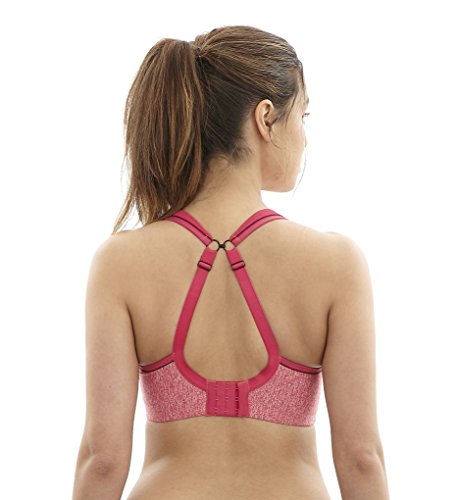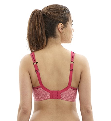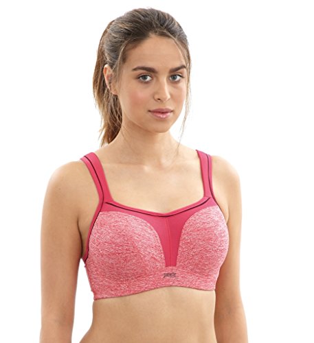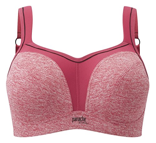 The ultimate sports bra especially designed for the full busted women combines comfort, maximum support and reduces bounce by 83 percent. Wide padded straps disperse pressure on the shoulders for extra comfort. Smooth inner molded cups reduce friction and improve comfort. Underwire are wrapped in silicone and sewn between fabric layers for comfortable support. Firm underband anchors the bra to the body. Lightweight microfiber fabric wicks moisture away from the skin and breathable mesh panels keep skin cool. Rather than compressing your breasts against your rib cage like most sports bras, panache sports bra individually encapsulates each one-lifting, shaping and supporting from all sides.Feature
