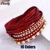 • 10 Colors Multilayer Wrap Bracelets Gold Filled Rhinestone Crystal Leather Bracelets Band Tennis Wristband Colorful Charming Jewelry In Bulk