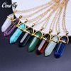 • Wholesale Gold Filled Different Gemstone Stone Hexagon Prism Beads Healing Point Chakra Elegant Man Women's Pendant Necklace with a Chain