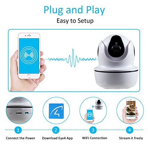 One-key WiFi (2.4Ghz only) setup in 5 minute via iPhone or Andriod smartphone using the app eye4, stream and control from anywhere anytime on your smartphone, tablet or computer. Watch the connect video: open the app>click “+” at the top right>ip camera>video tutorial.