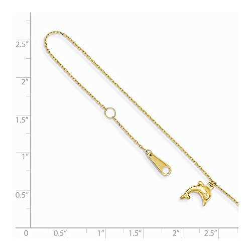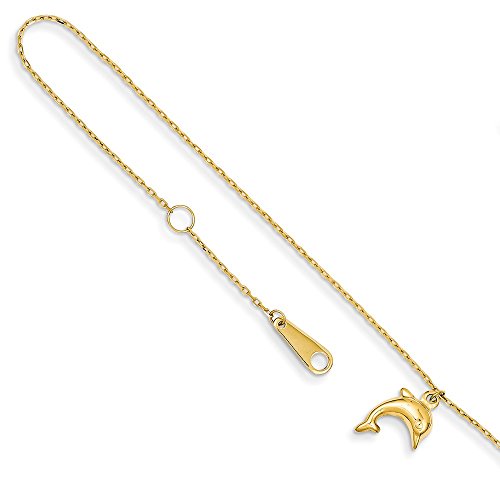 Solid 14k Yellow Gold Dolphin Pendant Charm with 1 inch Extension Anklet 10" (1mm)