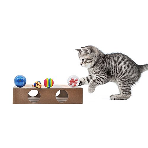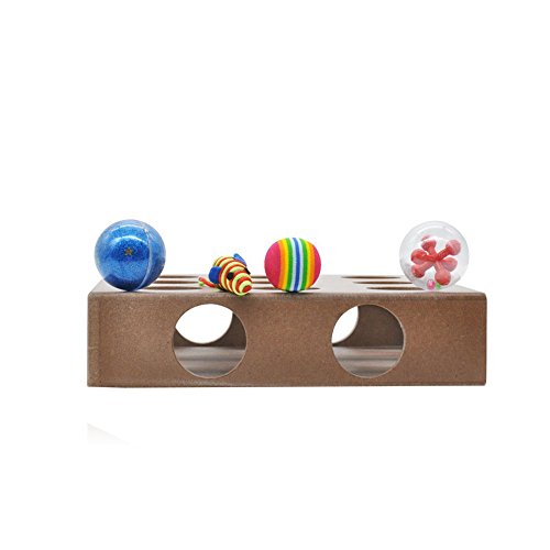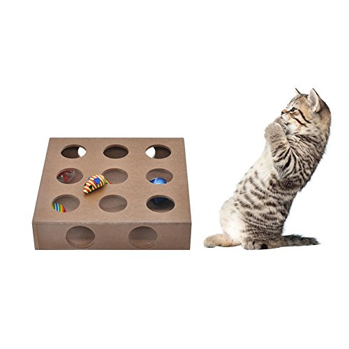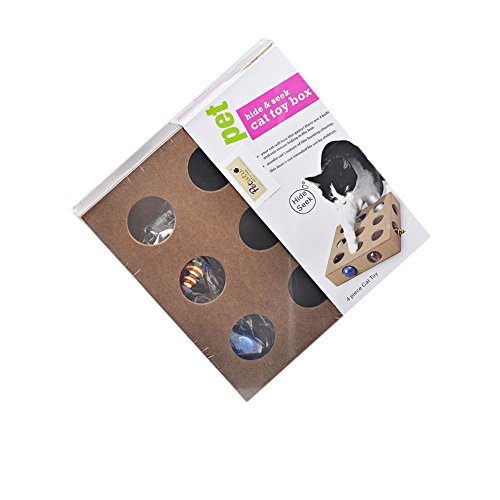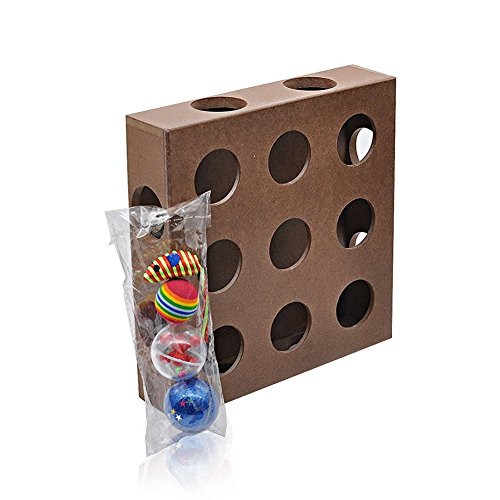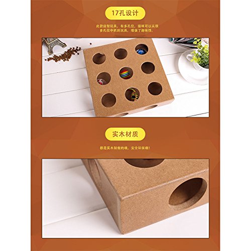 -. Feature : Environmental protection high quality natural wood, non-toxic / Three balls and a mouse inside the box / Size:9.8x9.8x2.3 inch / It is treasure-seeking puzzle for your smarty cat, bring out the genius in your cat with our interactive square Box / Educational Toys keep your cat physically active, happy and healthy