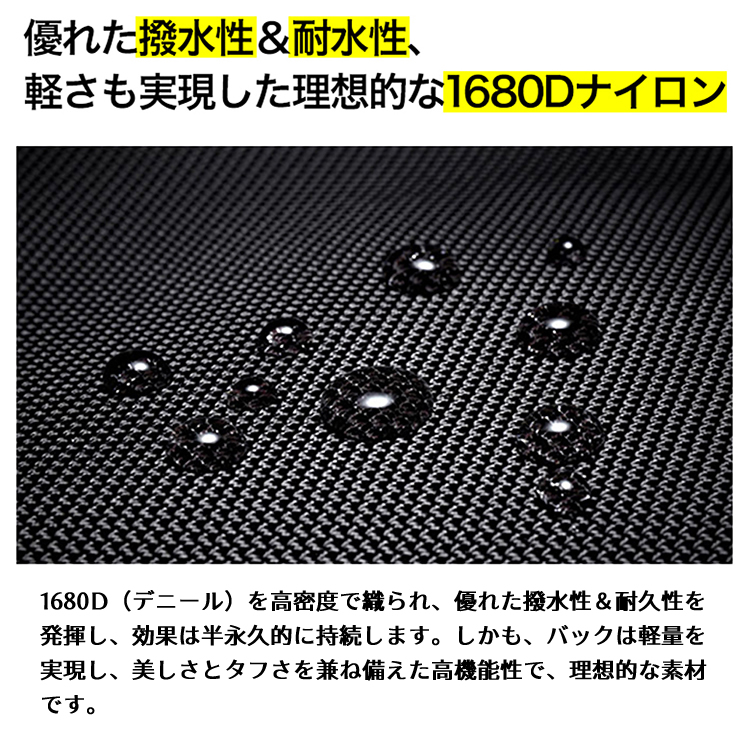■外側:1680D ballistic nylon(バリスティック ナイロン)+ Polyester(ポリエステル)