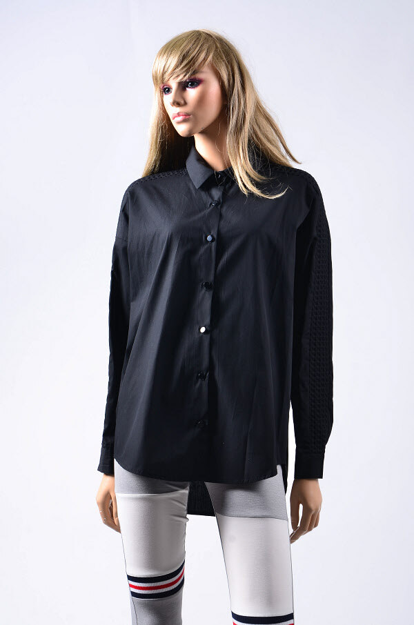 EGOIST, 팔선에서 어깨 레이스 배색으로 한층 트랜디한 감각이 돋보이는 블라우스입니다