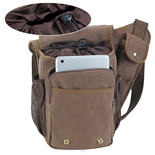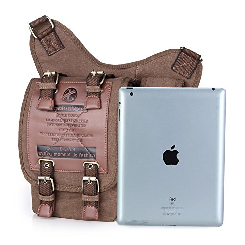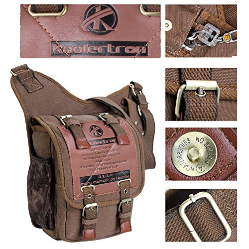 -. Title : Koolertron Vintage Mens Canvas Backpack Bicycle Bag Womens Shoulder Sling Chest Military Leather Patchwork Ipad Bag Messenger Bag(Khaki)