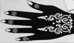 RIGHT HAND. PACK OF 5 STENCILS. We know how hard it can be thinking of a pattern when creating hinna designs, not to forget the time it takes to carefully apply the hinna paste. So after carefully considering the common shapes and patterns people create using hinna cones/paste, we have put together 5 mixed hinna stencils in a pack. For bridal occasions, weddings, religious events, celebrations, any other events, saves time energy and thinking about designs. Please do take a look at our other products which may interest you 0 |