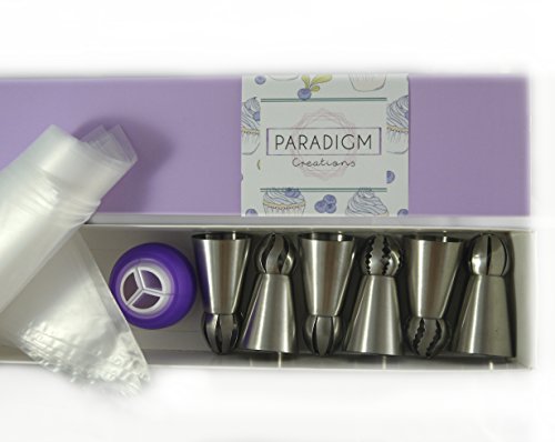 COMPLETE SET - Get started right away with our complete set of 6 piping tips, 10 piping bags and 3-color coupler. Save money and time by not having to purchase these items separately.