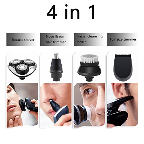 【4-in-1 multifunctional electric shaver】1 product with 4 functions. There are 4 detachable attachments of this electric razor for shaving beard, sideburns, stubble, nose and ear hair and for cleansing face.