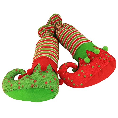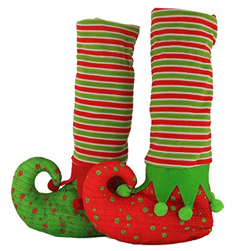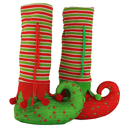Wewill Christmas Table Leg Covers Elves Feet Shoes Legs Party Decoration Holiday Stockings, 14x8x3 Inch (Red/Green), Pack 2
