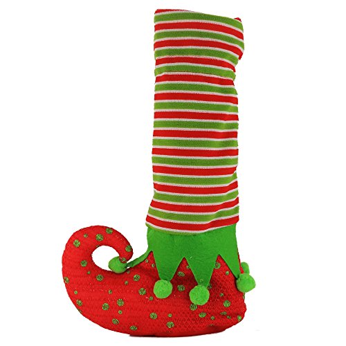 Design: Fabric elf chair leg covers assorted in red and green polka dot shoes with stripes on the legs, can be filled with anything from candy to gifts. The string on the top is used for tightening to secure fasten.