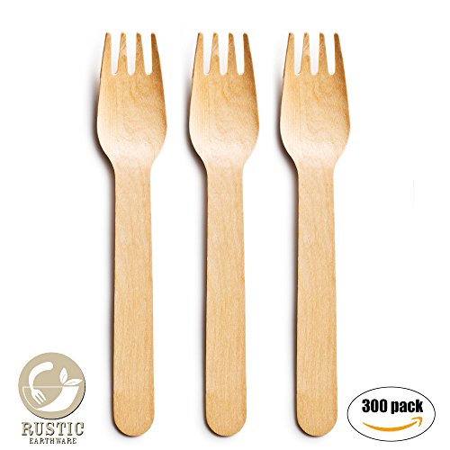 Eco Disposable Forks 300 Pc Set by Rustic Earthware | Birch Wood Biodegradable Tableware | Use for Appetizers, Dinner & Desserts | Bonus Party,...