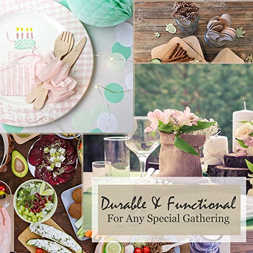 ★ FUNCTIONAL, DURABLE & WELL-MADE ★ Our natural and eco-friendly flatware is designed for eating a variety of foods including meats, salads, hearty stews, fruits and desserts such as ice cream, pie, cake and much more. They are sturdy and heavy-duty, ready for any food at your event!
