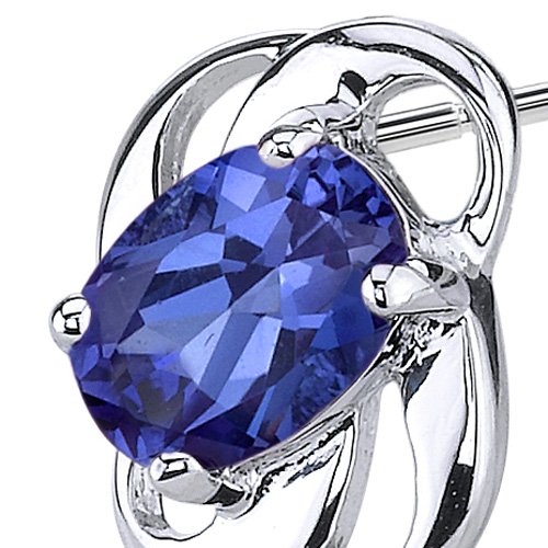 Gemstones: Lab Created Sapphires, Oval Shape, 7x5mm, 2.00 carats total gem weight. Sapphires are top quality with Ceylon Blue hue, fabulous sparkle and flawless clarity. Earrings are in pure Sterling Silver Rhodium Finish and weighs 1.50 grams. Earrings feature Stud Post with Bullet backings. Includes a Designer Gift Box. Style SE6974Feature