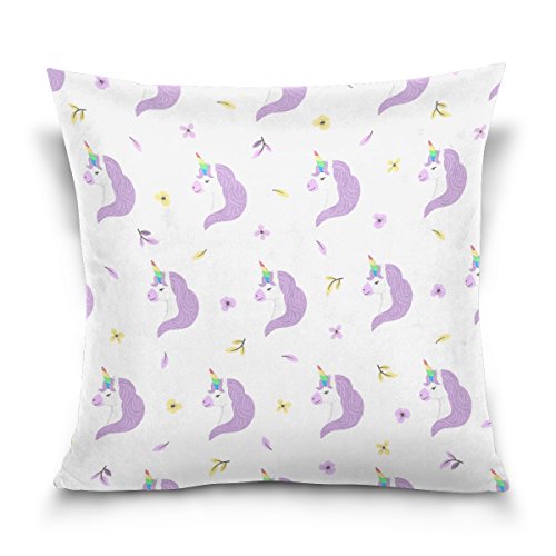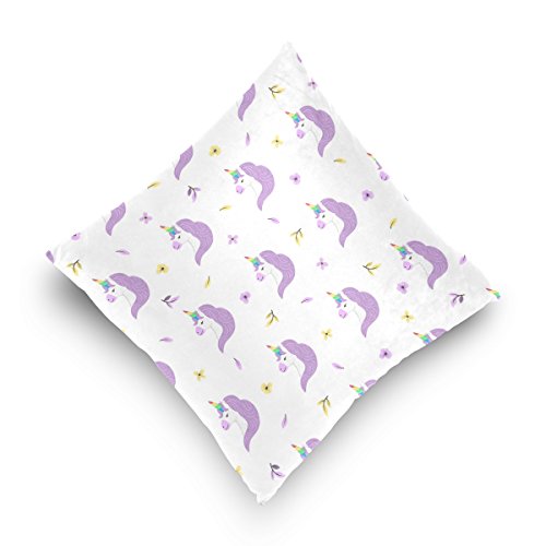 1.Pattern: Unicorn Purple Mane Rainbow Horn Printed Cotton Velvet Custom Throw Pillow Case. 2.Material:Made of 50% Cotton,50% Polyester,Double-sided Printing. 3.Unique design:Hidden Zipper closure on bottom for easy removal of insert. 4.High-points:Soft to touch, easy to wash and dry fast. 5.Using Place:Wide applications,perfect for home decoration(bed,couch,sofa,or chair),car decoration,hotel,cafe decor,and everyday use as it will create a warm and holiday mood wherever they are placed. Great gift idea for friends,a lover,boyfriend,girlfriend,husband or a wife.