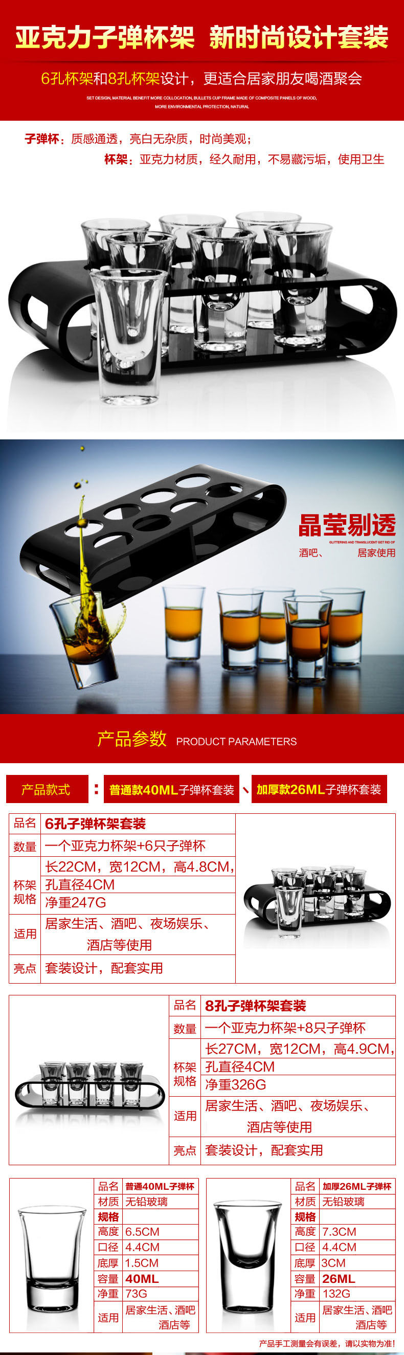 无铅白酒杯连架套装烈酒杯一口杯玻璃小酒杯子弹杯酒吧酒具