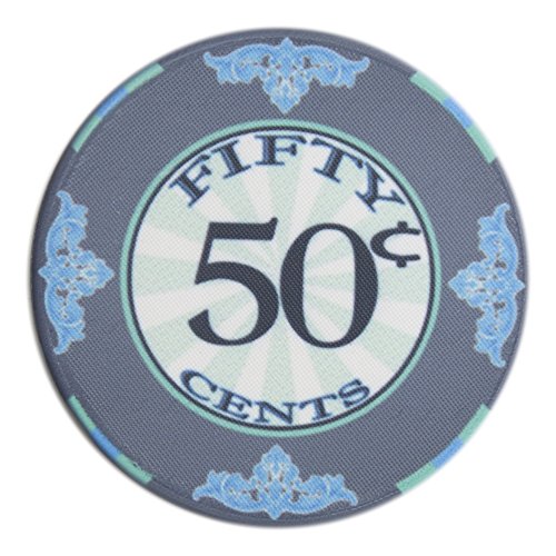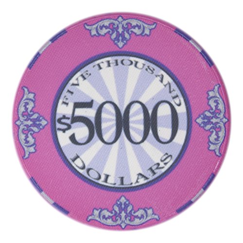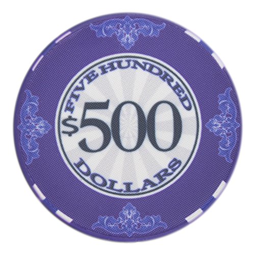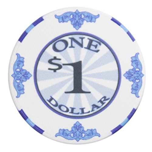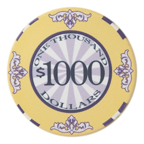 This is the $1 Scroll poker chip. The Scroll poker chips are high quality, casino grade ceramic poker chips. These chips feature Victorian style flourishes around the outer border and large, easy to read denominations in the center. The Scroll is a classy look for any poker chip enthusiast and offers a true casino quality look and feel.