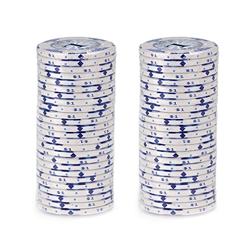 Brybelly Scroll Poker Chip Lightweight 10-gram Casino Grade Ceramic - Pack of 50 ($1 White)