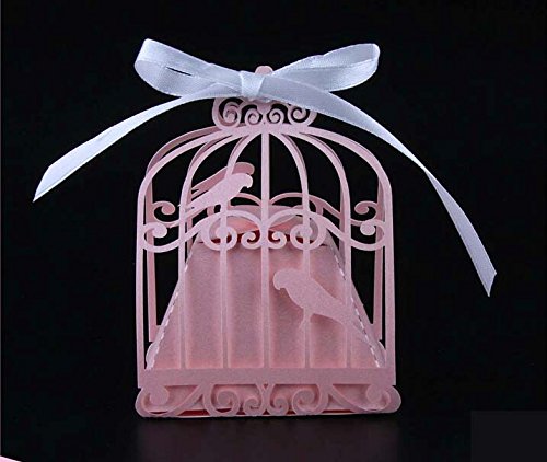 Somnr® 50pcs Love Birdcage Laser Cutting Candy Box Chocolate Box Wedding Gifts For Guests Wedding Decoration Party Supplies Decorations (Pink)