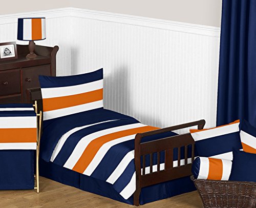 -. Title : Sweet Jojo Designs Fitted Crib Sheet for Modern Navy Blue and Orange Stripe Baby/Toddler Bedding - Stripe P.R.Int