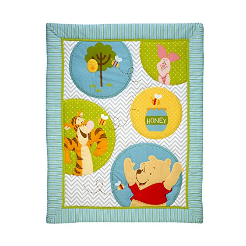 -. Feature : Pooh's Play Day 4pc Crib Set includes: comforter, dust ruffle, sheet, and Pooh wall art / Fabric: 55% Cotton/45% Polyester. Wall art: MDF / Coordinates with a full line of Pooh's Play Day nursery bedding and decor