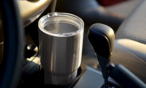 - At 30oz this sleek classy looking cup will fit into most standard cup holder but as enough coffee to keep you going through those rough and tough days