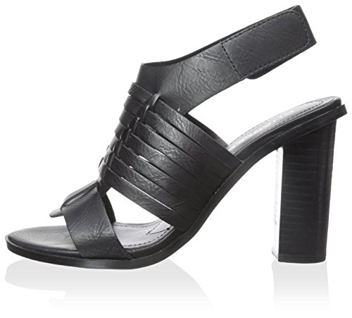 Product DescriptionLeather sandal features a woven upper, adjustable strap, thick heel0