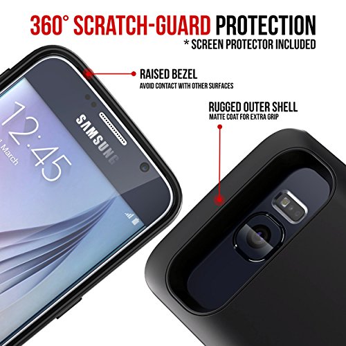 ULTRA SLIM: 360° scratch-guard protection minimizes bulk and weight for Galaxy S6 charger case. Raised front bumper stands higher than your Galaxy screen to avoid contact with other surfaces. A high quality screen protector is included with the Galaxy S6 charging case.