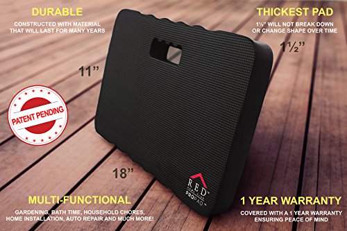 Thick Kneeling Pad - Garden Kneeler for Gardening, Bath Kneeler for Baby Bath, Kneeling Mat for Exercise & Yoga - EXTRA LARGE (XL) 18x11", THICKEST 1-½", Black