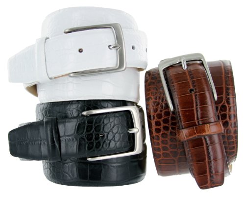 -. Binding : Apparel -. Brand : Belts.com -. Department : mens -. Feature : 5 Holes at the tip end for maximum size flexibility. / Supple Italian Calfskin Leather fully lined with Genuine Leather / 35mm (1 3/8") Wide Solid Brass Brushed Nickle Finish Buckle / This belt is measured fromwhere the leather folds at the buckle end to the center hole at the tip end. / Men's Dress Belts, available in sizes from 32 to 54 -. ProductGroup : Apparel -. ProductTypeName : ACCESSORY -. Title : Joseph Brushed Nickel Finish Buckle Italian Leather Alligator Grain Dress Belt