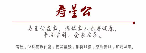 寿星公在家,保佑家人长寿健康,平安吉祥,全家安乐。寿星,星名,中国神话中的长寿之神。本为恒星名,为福、禄、寿三星之一,又称南极老人星。
