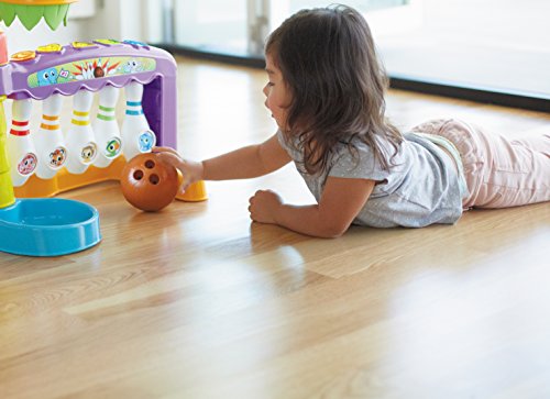 Over 75 sounds and phrases and three mode buttons on backboard grow with your child: Learn (teaches colors, numbers and shapes), Move (lights and sounds encourage movement) and Games (teaches child to follow directions)