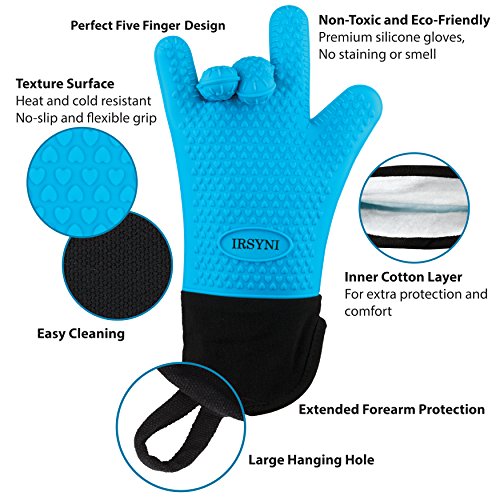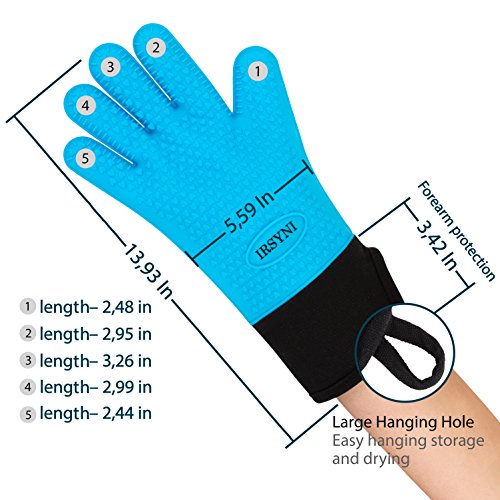 PREMIUM QUALITY CONSTRUCTION: These BBQ gloves are made of 100% food grade silicone, which is ultra-durable, non-toxic, waterproof, FDA compliant and BPA-free. Our silicone baking gloves are very flexible to provide you maximum comfort, and are extra-long to protect your wrist and arm. Professionally designed to last thousands of uses; real value for your money!
