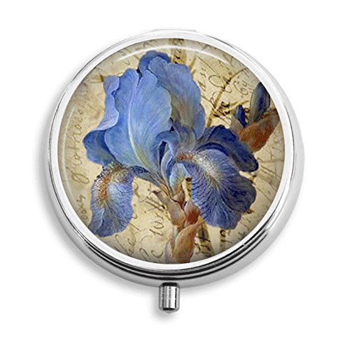 -. Title : Vintage Iris Flower Pill Box Pill Holder Pill Case Medicine Holder Decorative Box Mint Tin Vitamin Holder Small Craft Container Handmade Gifts For Her