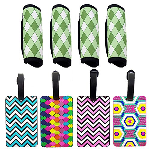 Product Description This is a very practical luggage set, bring convenience for your trip About the luggage tags Give your luggage some personality with this set of 5 brightly colored luggage tags. Easy to spot includes and ID tag and location for a business card. Lalonovo has been making travel easier and safer with products that provide protection, peace-of-mind, safety, security and organization pure pvc/soft tags funny/attractive/unique/cute five different colors in each package About the luggage wraps The comfort grip is the perfect accessory to cushion the handles of a heavy bag. Attractive neoprene handle allow you to get rid of the ribbons. The luggage tags are durable, sturdy and fashionable, help to identify your luggage from others easily. Fluorescence Comfort Neoprene wraps Warranty: 365 DAYS SATISFACTION MONEY BACK GUARANTEE (For any reason, you're not satisfied with the product, return it back and get full refund or a replacement) 0