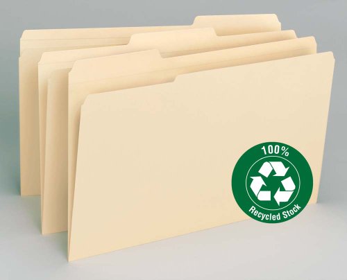 -. Title : Smead 100% Recycled File Folder, Reinforced 1/3 Cut Tab, Legal Size, Manila, 100 Per Box (15347)
