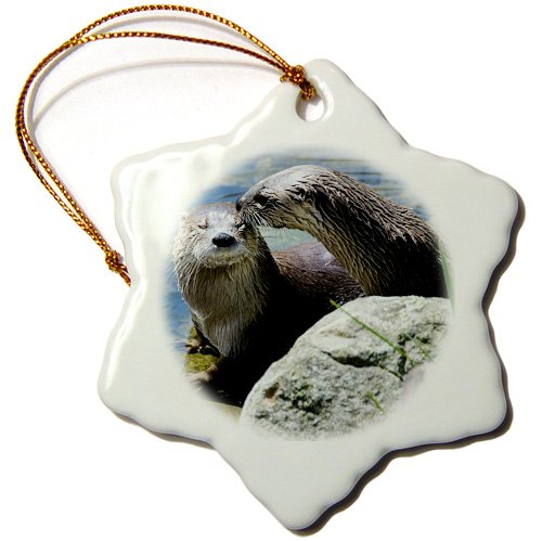 3dRose orn_113809_1 Otter Love-Snowflake Ornament, 3-Inch, Porcelain