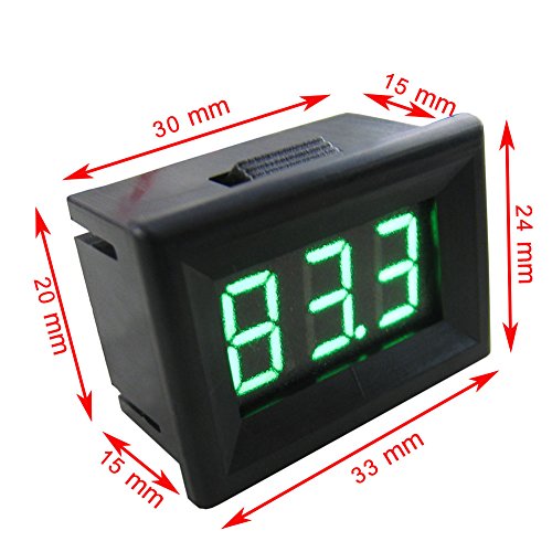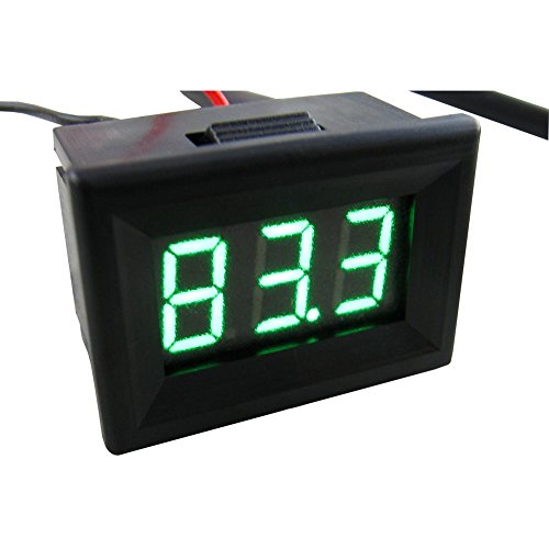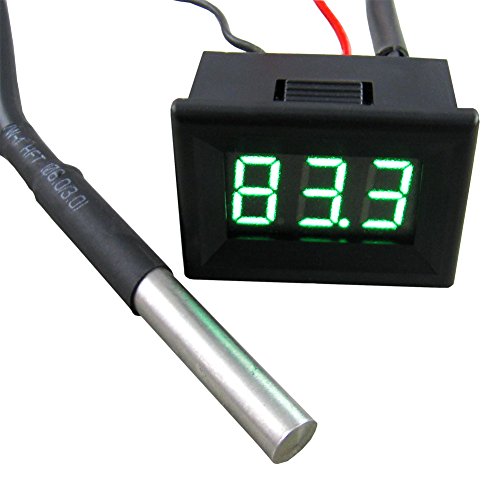 Yeeco 0.36" -55-125°C Black Shell Green LED Digital Thermometer Temperature Gauge Panel Temp Measure DS18B20 Waterproof Temp Probe for Air/Water/Pond