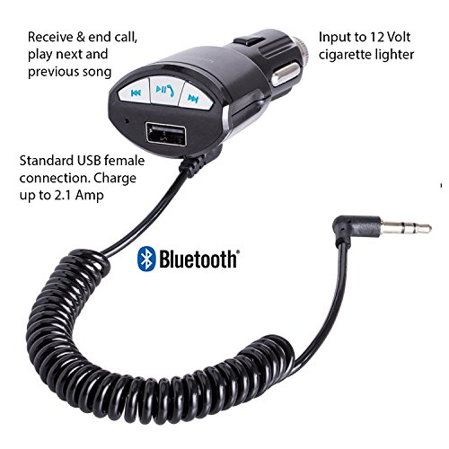 -. Feature : Charge and Stream music via Bluetooth with the MusicPlay & Charge Kit. For car-stereos with 3.5 mm aux-in but NO support for BT audio/music streaming. Plug in to the vehicle's aux-in to hear Music, GPS from favorite Apps through your car-stereo speakers. / Compatibility: Bluetooth enabled Android phones. Samsung Galaxy S4, S5 & Note 3 & 4, HTC's, LG's, Nexus, Moto's & Sony's. / To operate, pair charger with phone and set BT connection to "media only". Plug in the 3.5 mm aux-out "curly cable" from charger to vehicle aux-in. Music & App sound will play to car-stereo speakers. BT "auto connect" supported on most Android phones. / The Bluetooth car-charger may also be used for hands-free calling, microphone is built-in. Select "call" profile to activate. Works well at lower speed but the background noise cancellation is NOT optimized for highway driving (this would make the Kit 2 x price) / Kit Contains: Bluetooth Music streamer and 2m MicroUSB charging cable