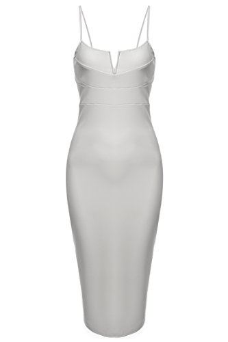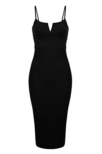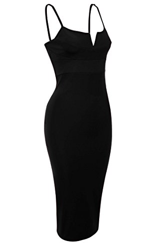 Adjustable spaghetti straps, mid-calf length, back split hem.