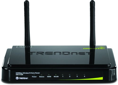 TRENDnet's 300Mbps Wireless N Home Router, model TEW-731BR, provides enhanced 300Mbps wireless n speed and coverage to share files, play games, and stream video wirelessly. Advanced encryption protects your wireless network, Access Control tools help block unwanted Websites and unknown users, and embedded GREENnet technology reduces power consumption by up to 50 percent. Advanced Multiple Input Multiple Output (MIMO) antenna technology reduces wireless dead spots. Wi-Fi Protected Setup (WPS) connects other WPS supported wireless adapters at the touch of a button. WMM Quality of Service (QoS) technology prioritizes gaming, Internet calls, and video streams. LEDs on the front of the router convey device status. Network wired devices to the four Fast Ethernet ports on the back of the router.; 4 x 10/100Mbps Auto-MDIX LAN ports; 1 x 10/100Mbps Auto-MDIX WAN port (Internet); One touch wireless connection to wireless clients using the WPS button; Wi-Fi compliant with IEEE 802.11n and IEEE 802.11b/g standards; High-speed data rates of up to 300Mbps with IEEE 802.11n; GREENnet technology reduces power consumption by up to 50 percent; Compatible with most popular cable/DSL Internet service providers using; Dynamic/Static IP, PPPoE, PPTP and L2TP protocols; 2 fixed external antennas support high speed performance and great coverage with MIMO technology; Firewall features Network Address Translation (NAT); Virtual server and Application Level Gateway (ALG) services for special Internet applications; Universal Plug and Play (UPnP) for auto discovery and support for device configuration of Internet applications; Dynamic DNS Client for dynamic Internet IP resolution; Provides additional security with Internet Access Control (MAC Address, Domain, and IP Filtering); Static and Dynamic RIP V1/2 routing support; Easy setup via Web browser using Internet Explorer 6.0 or above, Firefox 2.0 or above, Chrome, Opera, SafariFeature