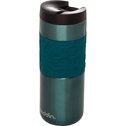 Studio : Aladdin Publisher : Aladdin Binding : Kitchen Product Description Comfort inside and out. As much as your daily Coffee brings you joy, so should the mug it's in. Aladdin stainless steel Vacuum mug with silicone sleeve boasts a textured band that feels and looks good in your hands. Plus, it fits under most single-serve machine and features our leak-proof flip-lid. And on the days when you're running late, Vacuum insulated stainless steel keeps your drink hot for 4 hours or cold for 30 hours with ice. 0