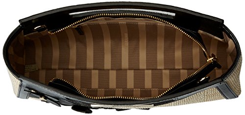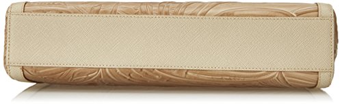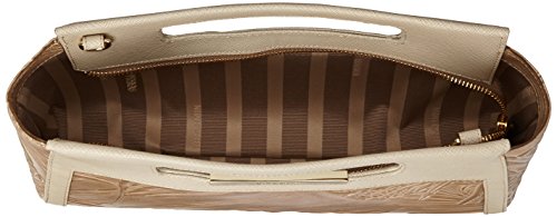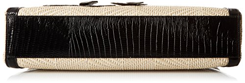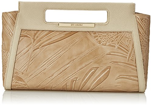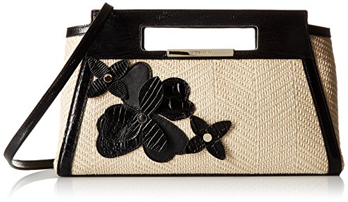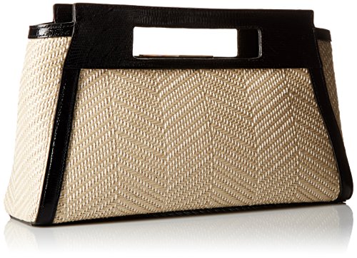 -. Feature : Large structured clutch featuring long cutout handles and engraved logo plaque / Removable shoulder strap