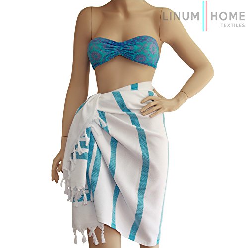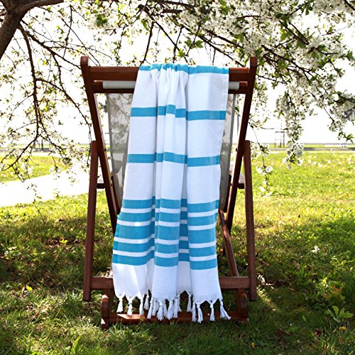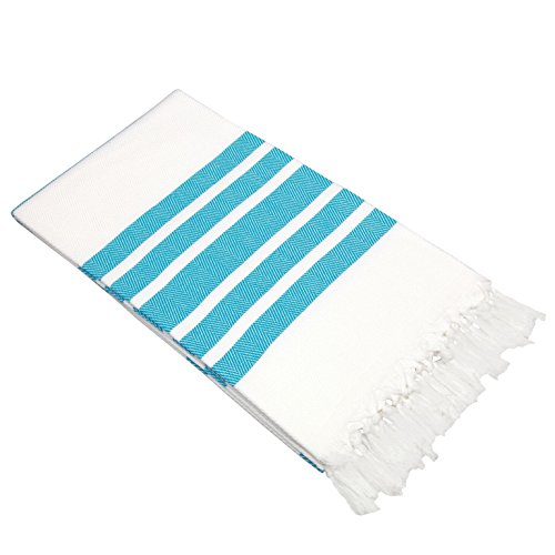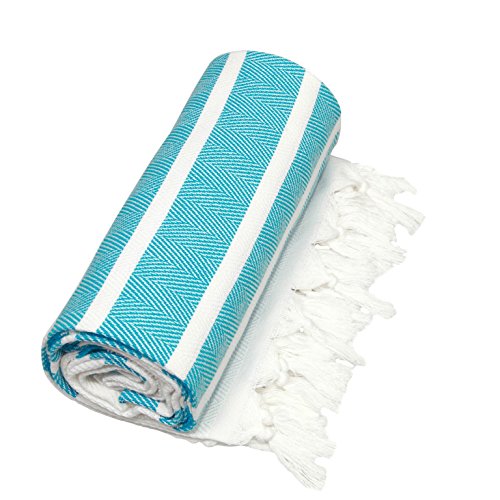 Linum Home Textiles Herringbone Pestemal 100% Soft Premium Authentic Turkish Cotton Luxury Pestemal, Turquoise/White