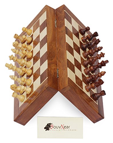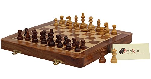 2017 January DealsSouvNear Chess - 12.5x12.5" Folding Premium Magnetic Travel Chess Board Game Handmade in Fine Rosewood with Storage for Chessmen - 100% Satisfaction GuaranteeA perfect travel companion for all you chess lovers, this magnetic chess set will keep all the chessmen rooted on the chess set unless you make your move! The chessmen conceal magnets in their bodies and the board conceals an iron sheet, creating a strong magnetic pull between the chess pieces and the board, so you can play without worries. The pieces will move only when you make a move and not with the bumps in your ride. If playing at home, you can make your game last for days...
