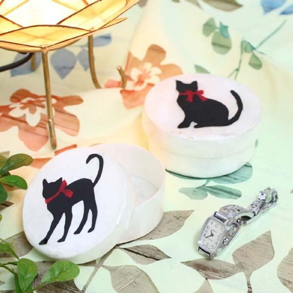 | クロネコがオシャレなカピス貝で作ったラウンド型BOXです。 |