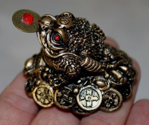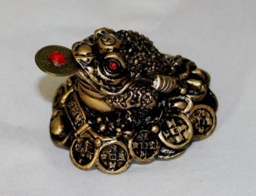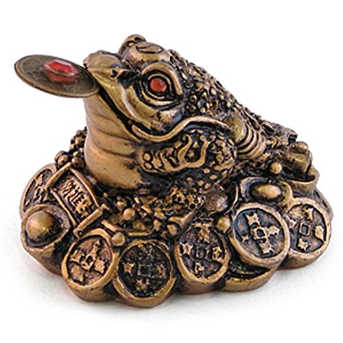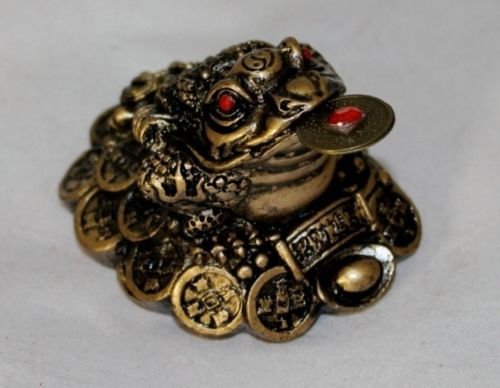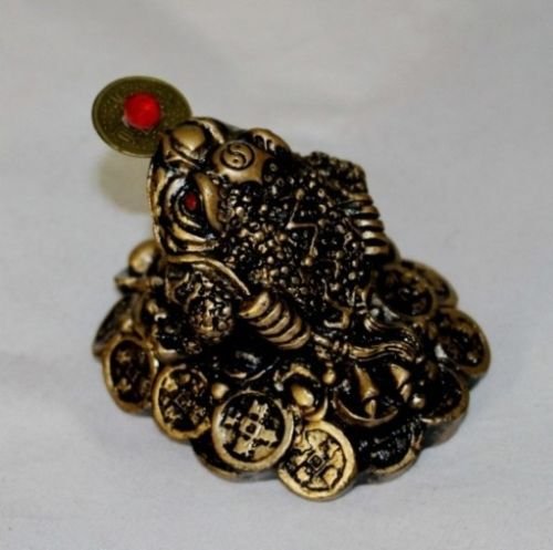 Small Lucky Brown Resin Money Toad / Frog with the Coin Feng Shui Figurine 27710