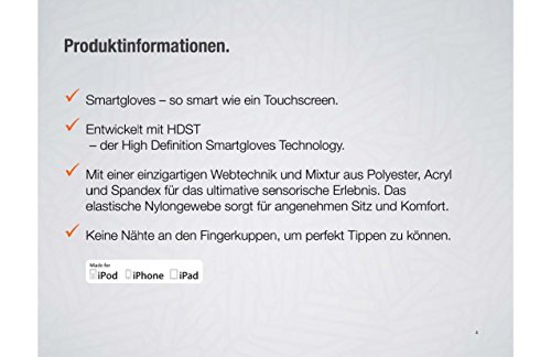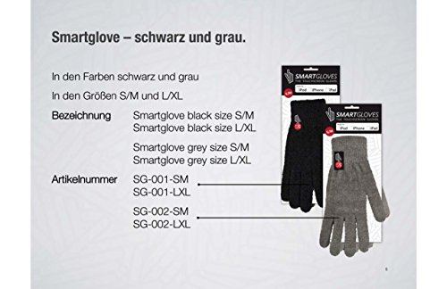 -. Binding : Misc. -. Brand : SMAR.T -. Color : Schwarz -. EAN : 0705688325550 -. Feature : Handschuhe, mit denen touchscreenfähige Endgeräte (Smartphones und Tablet-PCs) bedient werden können. Denn: Touchscreens können mit "normalen" Handschuhen nicht bedient werden. / Das elastische Nylongewebe sorgt für angenehmen Sitz und Komfort. / Entwickelt mit HDST" - der High Definition Smartgloves Technology. / Keine Nähte an den Fingerkuppen, um perfekt Tippen zu können. / Mit einer einzigartigen Webtechnik und Mixtur aus Polyester, Acryl und Spandex für das ultimative sensorische Erlebnis. -. Label : Smartgloves -. Manufacturer : Smartgloves -. Model : SG-002-LXL -. MPN : SG-002-LXL -. PackageQuantity : 1 -. PartNumber : SG-002-LXL -. ProductGroup : Sports -. ProductTypeName : SPORTING_GOODS -. Publisher : Smartgloves -. Size : L/XL -. Studio : Smartgloves -. Title : Smartgloves Touchscreen Smartphone Handschuhe Gr. L/XL Farbe: Grau -. UPC : 705688325550