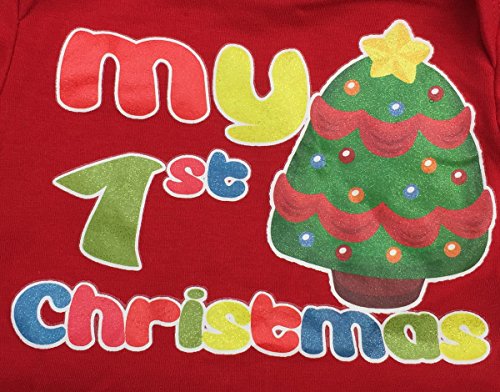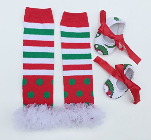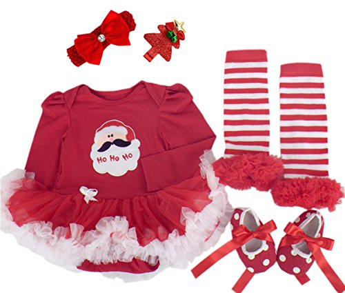 -. Feature : Christmas tree hairpin: golden stars, red bow, 2 small bells, Shiny Christmas tree Combination, will be issued bell bell bell sound. (The meaning: happiness and beautiful) / Package include: One set (5pcs: 1pc dress, 1pair shoes, 1pair warm leggings, 1pc headband, 1pc hairpin.) / Santa Claus Ho Ho Ho and My 1st Christmas / The material is soft, no harm for your baby's delicate skin. Secure snap closure, easy to change diapers. / The main Christmas color, red and green collocation, Highlight the atmosphere of Christmas joy, the children's favorite color