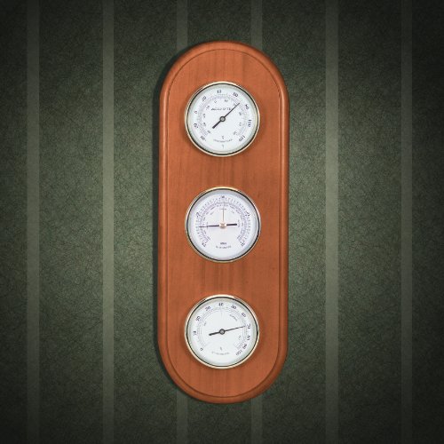 - Feature : Three precision instruments to monitor temperature, humidity and barometric pressure / Genuine wood case, brass bezels and glass lens / Hangs horizontally or vertically / Displays temperature in Fahrenheit and Celsius / Integrated hang hole for easy wall mounting