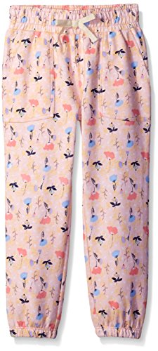 French terry jogger in allover flower print featuring wide elastic waistband with faux drawstring and elastic cuffs
